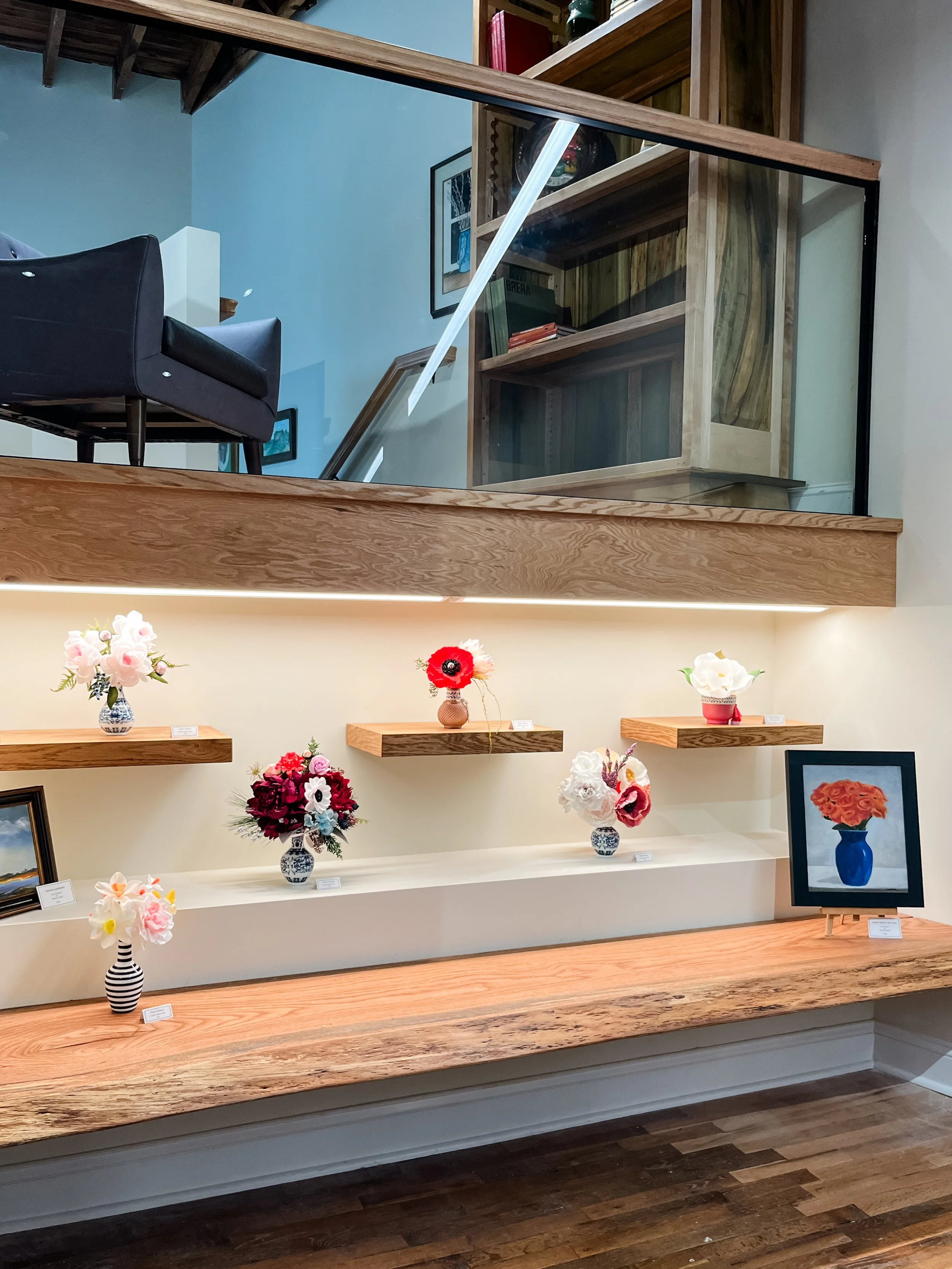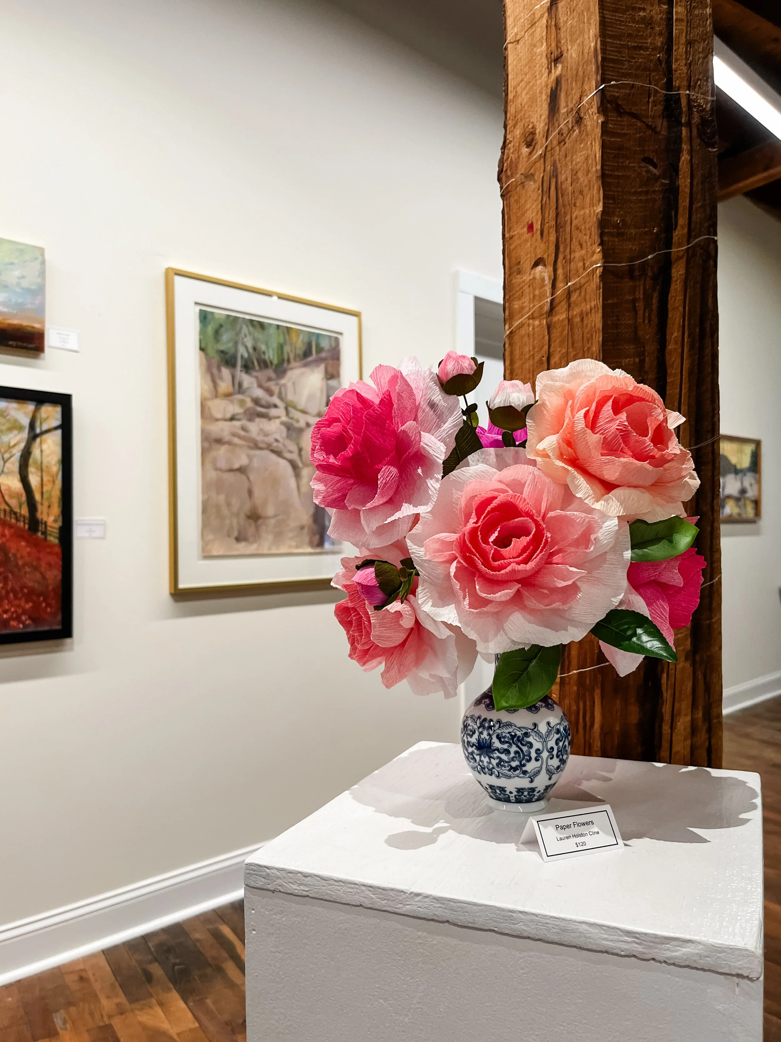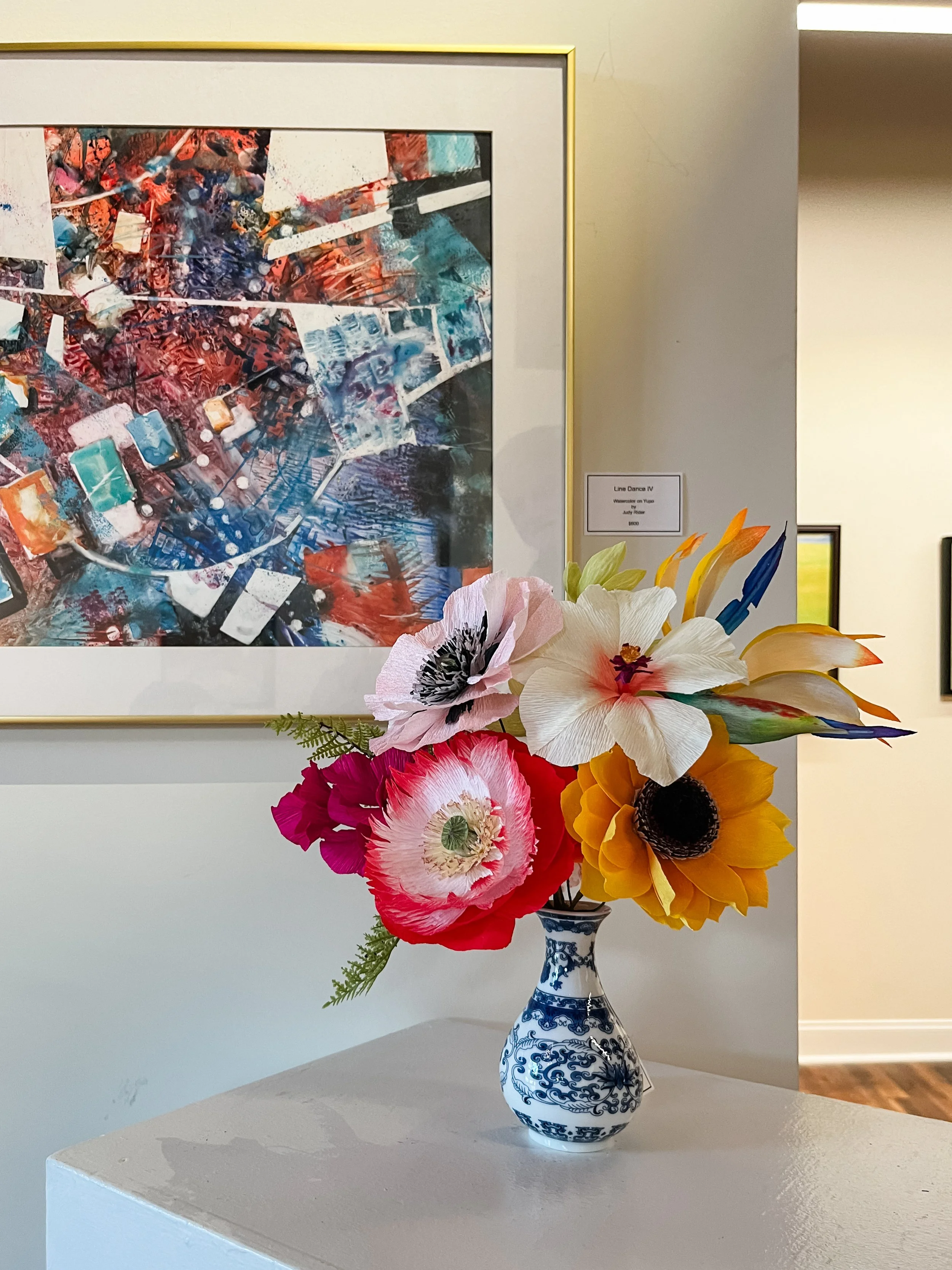 Also on display are fabulous spring paper flowers beautifully created by Lauren Holston Cline (The Paper Flower Market). Lauren has created everlasting blooms in a magnificently realistic fashion and stunning composition.